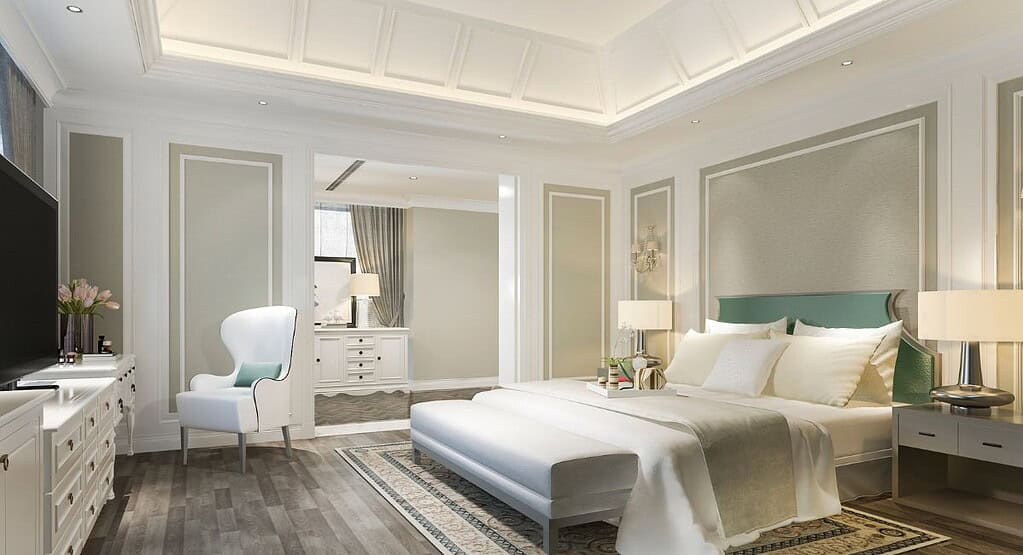 หนึ่งในไอเดียการแต่งผนังบ้านโมเดิร์น ซึ่งเป็นสไตล์ที่ได้รับความนิยมมากในสมัยนี้ก็คือการตกแต่งโดยอ้างอิงจากหลักการตกแต่งแบบ Modern Luxury ซึ่งจะเน้นการออกแบบบรรยากาศภายในให้มีความทันสมัย ใช้โทนสีที่เรียบง่าย ผสมผสานกับองค์ประกอบต่าง ๆ ซึ่งมีความพรีเมียม ให้ความรู้สึกหรูหรามากขึ้นไปอีกระดับ ไม่ว่าจะเป็นการใช้หินอ่อน กระจก หรือแม้แต่การใช้อุปกรณ์อย่างคิ้วสแตนเลสตกแต่งผนังซึ่งมีผิวสัมผัสเงางาม ช่วยเพิ่มความวาววับและมีระดับได้มากขึ้น