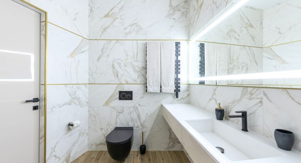 - ใช้งานคิ้วสแตนเลสร่วมกับหินอ่อนเพื่อความหรูหรา