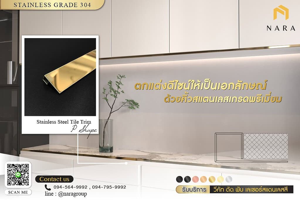 สนใจแผ่นสแตนเลส คิ้วสแตนเลสเข้ามุมกระเบื้อง ติดต่อสั่งซื้อและสอบถามเพิ่มเติมได้ที่เบอร์ 094-564-9992 , 094-795-9992 หรือ Line : @naragroup