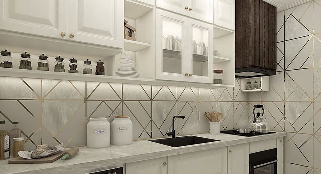 10. ใช้พื้นผนังสีเข้มกับสแตนเลสสีอ่อน