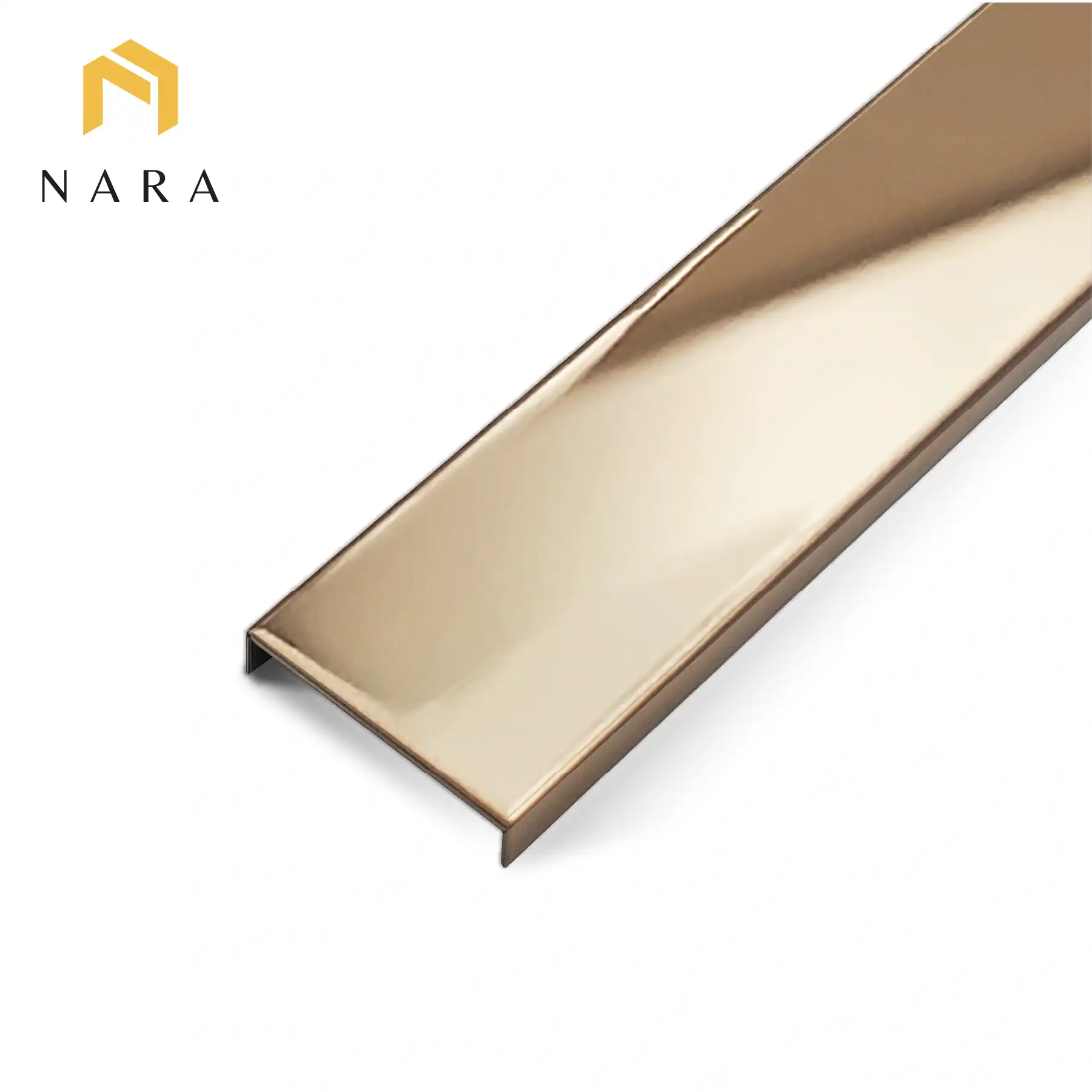 เสริมความหรูหราให้งานผนัง ด้วยกรุยเชิงสแตนเลสคุณภาพจาก NARA จะจับคู่กับหินอ่อนหรือกระเบื้อง สามารถเก็บรอยต่อได้อย่างสวยงาม เพิ่มความสง่างามให้กับตัวบ้าน เงางาม ทนทาน ไม่เป็นสนิม สีสวยทนนับ 10 ปี เพิ่มความโดดเด่นให้กับทุกหน้างาน ติดตั้งง่ายใช้งานได้ทั้งภายนอกและภายใน