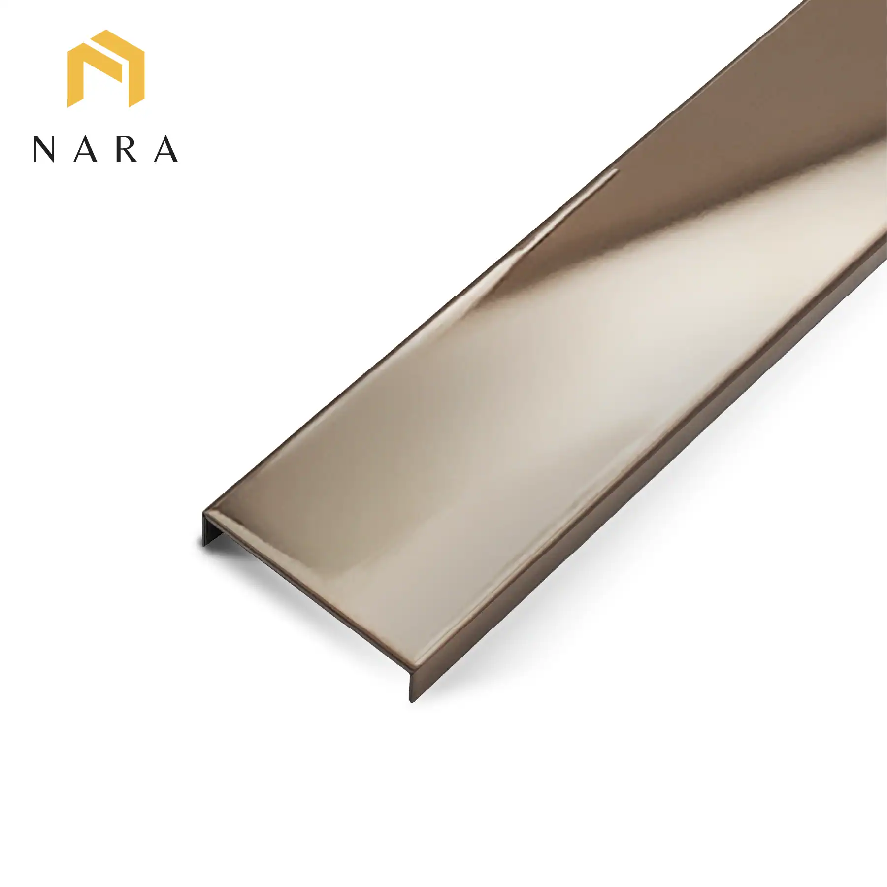 เสริมความหรูหราให้งานผนัง ด้วยกรุยเชิงสแตนเลสคุณภาพจาก NARA จะจับคู่กับหินอ่อนหรือกระเบื้อง สามารถเก็บรอยต่อได้อย่างสวยงาม เพิ่มความสง่างามให้กับตัวบ้าน เงางาม ทนทาน ไม่เป็นสนิม สีสวยทนนับ 10 ปี เพิ่มความโดดเด่นให้กับทุกหน้างาน ติดตั้งง่ายใช้งานได้ทั้งภายนอกและภายใน