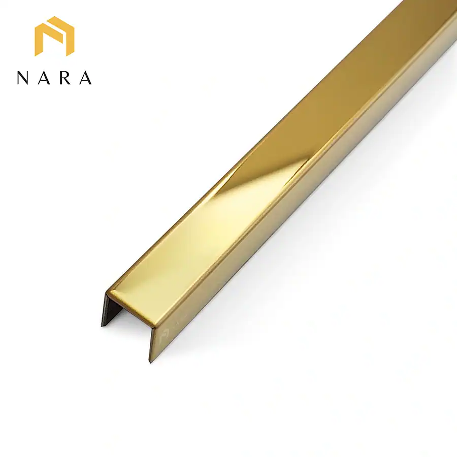 เสริมความหรูหราให้งานผนัง ด้วยกรุยเชิงสแตนเลสคุณภาพ สีทองจาก NARA ด้วย จะจับคู่กับหินอ่อนหรือกระเบื้อง สามารถเก็บรอยต่อได้อย่างสวยงาม เพิ่มความสง่างามให้กับตัวบ้าน เงางาม ทนทาน ไม่เป็นสนิม สีสวยทนนับ 10 ปี เพิ่มความโดดเด่นให้กับทุกหน้างาน ติดตั้งง่ายใช้งานได้ทั้งภายนอกและภายใน