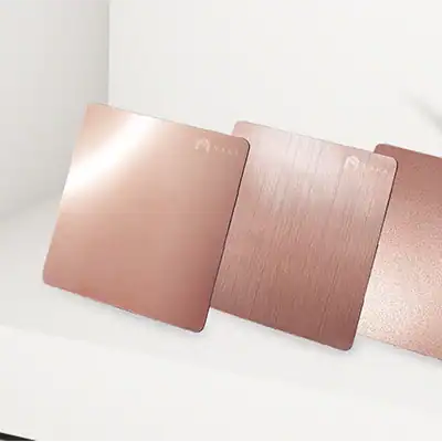แผ่นสแตนเลสสีพิงค์โกลด์ ตอบโจทย์ทุกความต้องการด้านการตกแต่ง มิติใหม่ของความหรูหรา และแฝงไว้ซึ่งความมีชีวิตชีวาและโรแมนติก แผ่นสแตนเลสสีพิงค์โกลด์ สามารถนำมาแต่งเติมสีสัน ตกแต่งพื้นที่และเฟอร์นิเจอร์ได้อย่างสวยงาม ลงตัว เพิ่มความน่าสนใจ ดูแลรักษาง่าย ไม่เป็นสนิม เพิ่มความมีสไตล์ในทุกมุมมอง