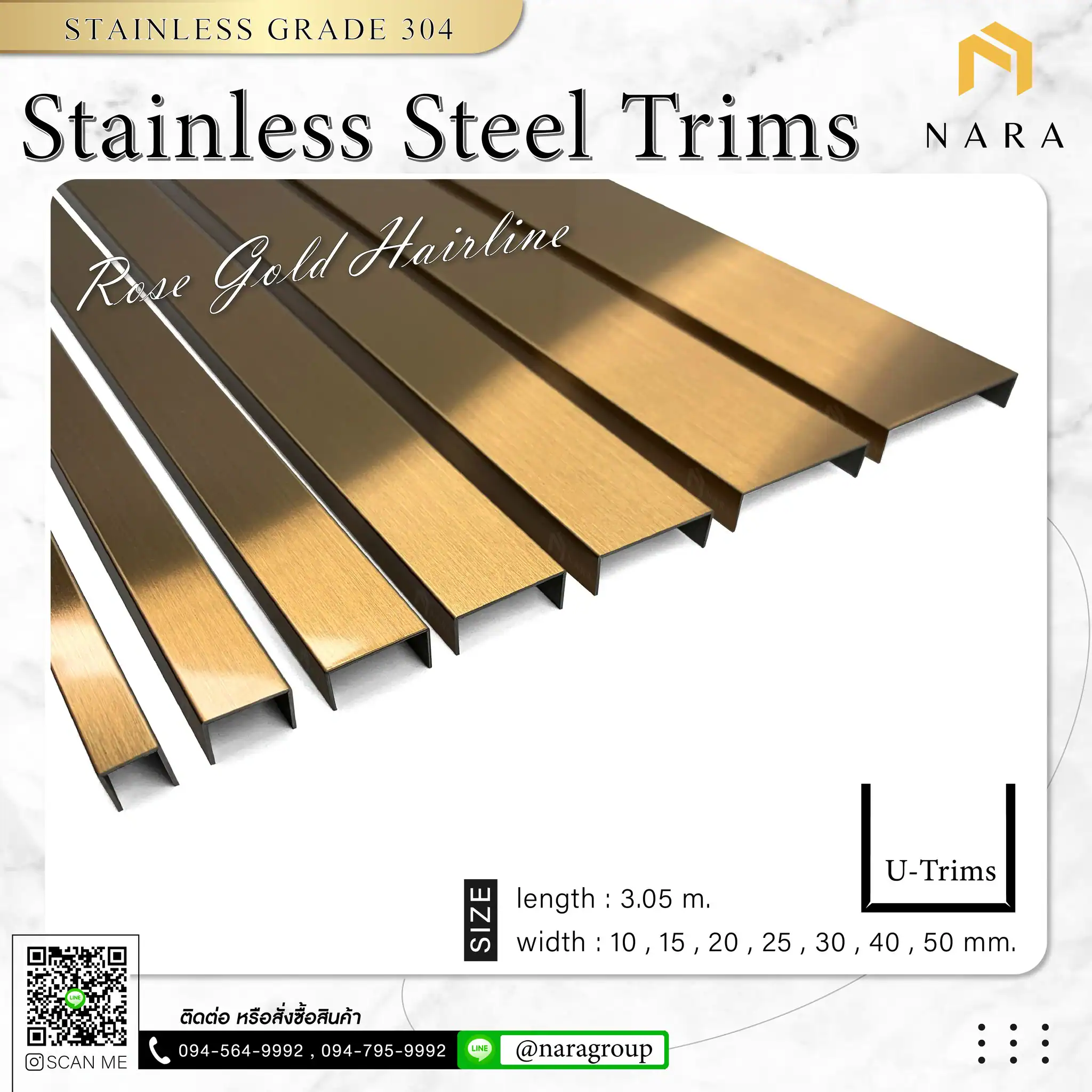 คิ้วสแตนเลส 25 มม. และ สแตนเลสพับตัวยู ช่วยยกระดับงานดีไซน์ให้สวยหรู ทนทานด้วยคิ้วสแตนเลสตัวยู ที่เติมเต็มความสมบูรณ์แบบให้กับพื้นที่ ติดตั้งง่ายและคุ้มค่าด้วยคิ้วสแตนเลสตัวยู ราคาโรงงาน หากคุณมองหางานสแตนเลสแบบครบวงจร NARA Stainless คือตัวเลือกที่คุณไว้วางใจได้ เรามีผลิตภัณฑ์สแตนเลสที่หลากหลาย ตอบโจทย์ทุกความต้องการในสไตล์ที่เป็นคุณ